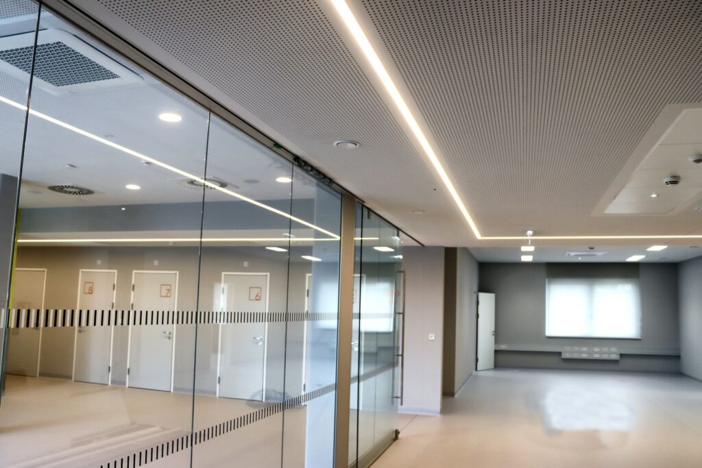 Weiters wurden von uns die strukturierte Verkabelung samt Netzwerkverteilern errichtet und die Sprech-, Notbeleuchtungs-, Blitzschutzanlage sowie die MSR-Technik installiert. Außerdem wurde die Versorgung sämtlicher Maschinen und Anlagen für die Zahnarzt-Technik hergestellt und Installationsarbeiten für AWG2-Räume für kritische medizinische Anwendungen vorgenommen.