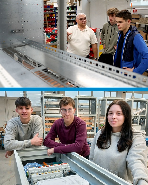 Schüler:innen der Elektrotechnik-Klasse der HTL ergriffen die Chance, direkt in der Abteilung Schaltanlagenbau von LANDSTEINER mitzuarbeiten.
