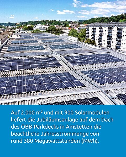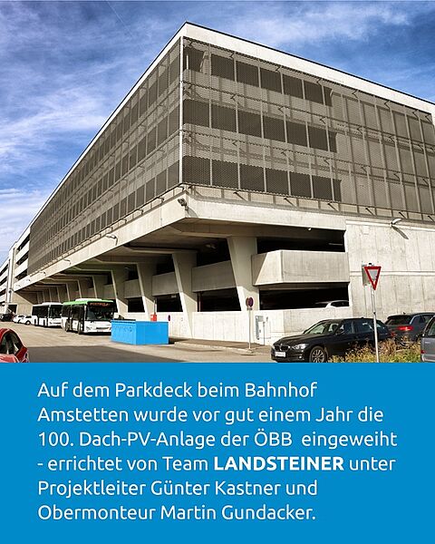 Die Jubiläumsanlage befindet sich auf dem Dach des Parkdecks beim Bahnhof Amstetten. Für LANDSTEINER ein Heimspiel und eines von zahlreichen Projekten in Verbindung mit den ÖBB.