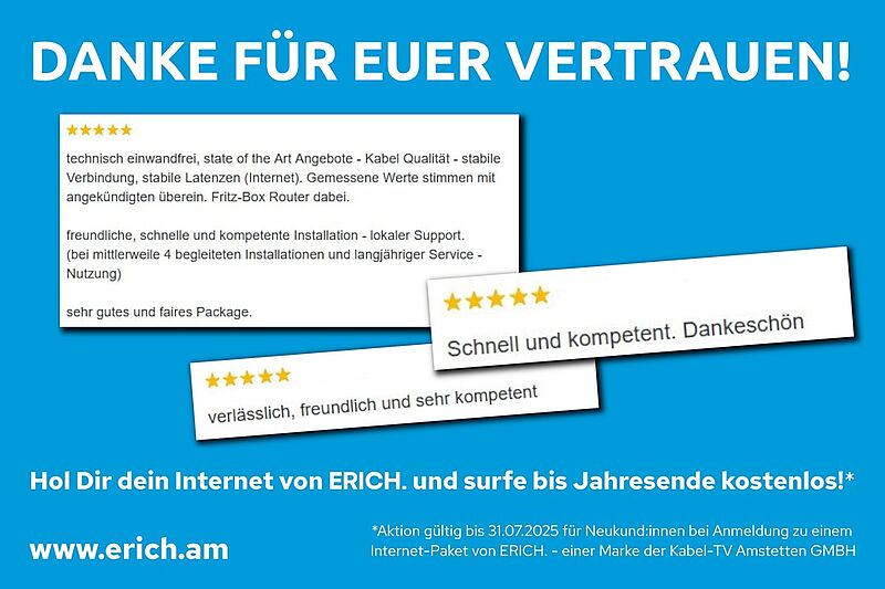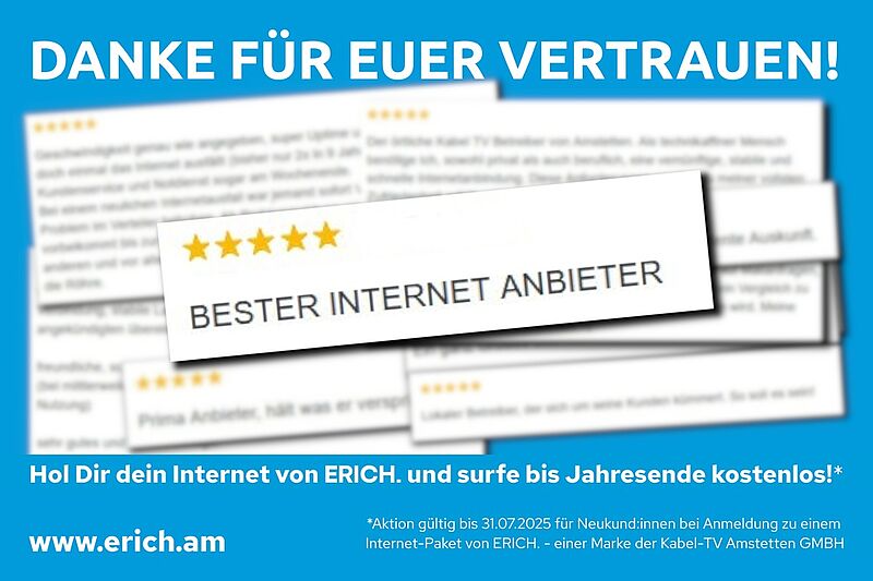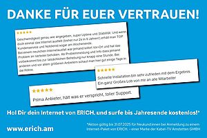 Seit 18. Mai zahlt sich der Umstieg auf unser regionales Internet von ERICH. besonders aus!