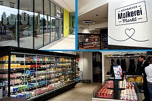 Vor kurzem wurde der große Ausbau der "Berglandmilch eGen" in Aschbach feierlich eingeweiht. Das Projekt umfasste die Erweiterung des Bürogebäudes samt Neuerrichtung eines Shops (Aschbacher Molkerei Markt) und einem großen Veranstaltungssaals. Dieser Standort in Aschbach im Mostviertel beherbergt Österreichs größte Molkerei, in der täglich rund 1,5 Mio. Liter Milch verarbeitet werden.