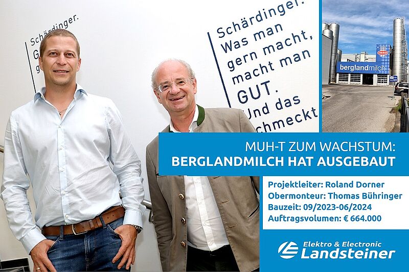 Kennt man die Bestrebungen der Berglandmilch eGen, dann wundert es nicht, dass das Unternehmen erst letztes Jahr für langjährige und herausragende Maßnahmen die Klimaaktiv-Auszeichnung vom zuständigen Bundesministerium verliehen bekommen hat. Die größte Molkerei des Landes wird beispielsweise mit Wärmeenergie aus selbst hergestelltem Biogas betrieben. Die Biomasseheizanlage mit einer Brennstoffwärmeleistung von über 8 Megawatt wurde in starker Beteiligung der LANDSTEINER-Tochterfirma Brunmüller GMBH errichtet, die unter anderem die Niederspannungshauptverteilung errichtet sowie die allgemeine Elektroinstallation durchgeführt hat.