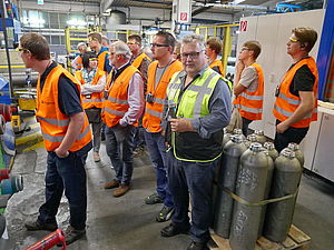 Die Mitarbeiterinnen und Mitarbeiter der Elektro Spreitzer GmbH konnten bei dieser Gelegenheit den Standort in Kienberg besichtigen und erhielten einen guten Einblick über die einzigartige Qualität der dort gefertigten Produkte. Vom Rohling bis zur Gasflasche konnte der gesamte Ablauf der Fertigung mitverfolgt werden.