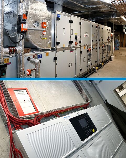 Außerdem wurde von uns die Niederspannungs- und Unterverteilung, die PKW-Ladestruktur, eine PV-Anlage mit 113 kWp Leistung, eine USV-Anlage und eine Notstromanlage mit 160 kVA installiert. Insgesamt 175 km Kabel und 10,5 km Rohre haben wir hierfür verlegt und insgesamt 1.800 Steckdosen, 1.440 Leuchten und 650 Brandmelder installiert.