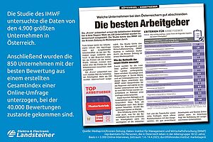Die größte Zeitung des Landes berichtete über eine großangelegte Studie des Instituts für Management und Wirtschaftsforschung (IMWF), welche sich mit den beliebtesten Arbeitgebern Österreichs und den Bedürfnissen und Erwartungen der arbeitenden Bevölkerung gegenüber dem Arbeitgeber beschäftigte.