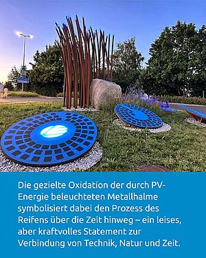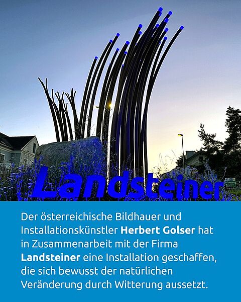 AMSTETTEN. Am Kreisverkehr Richtung Kruppstraße zieht seit Kurzem ein außergewöhnliches Kunstwerk die Blicke auf sich: Der österreichische Bildhauer und Installationskünstler Herbert Golser hat in Zusammenarbeit mit der Firma Landsteiner eine Installation geschaffen, die sich bewusst der natürlichen Veränderung durch Witterung aussetzt. Die gezielte Oxidation der durch PV-Energie beleuchteten Metallhalme symbolisiert dabei den Prozess des Reifens über die Zeit hinweg – ein leises, aber kraftvolles Statement zur Verbindung von Technik, Natur und Zeit.