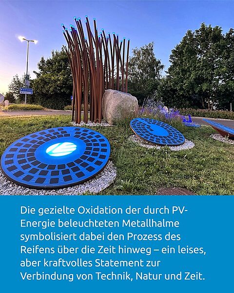 So verbindet sich mit dem Kunstwerk im Kreisverkehr nicht nur Gestaltung mit Technik, sondern auch ein Stück Stadtgeschichte mit einem Blick in die Zukunft.