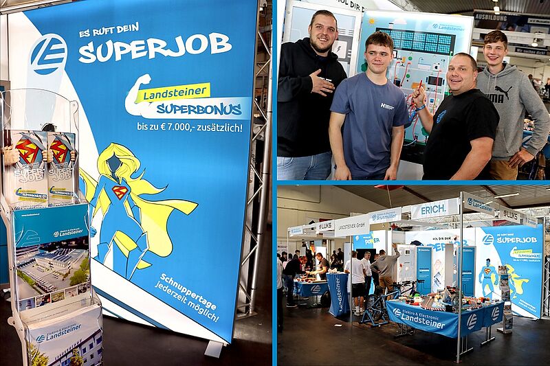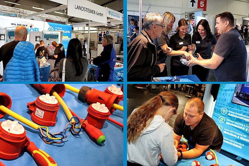 Als teilnehmender regionaler Betrieb informierten wir die jungen Erwachsenen (und Eltern) über die umfangreichen Ausbildungs- und Karrieremöglichkeiten in der Landsteiner Unternehmensgruppe. Hier boten wir zugleich die Möglichkeit an, sich vor Ort am Zusammenbauen einer Starkstrom-Steckdose zu versuchen.
