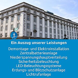 Die Renovierungsarbeiten der beiden denkmalgeschützten Gebäude umfassten für unser Team unter der Leitung von unserem Kollegen Stefan Wagner die gesamten Elektroinstallationsarbeiten bishin zur EDV-Verkabelung und die heute berühmte, einzigartige Beleuchtung des gläsernen Aufzugs mit Wahrzeichen-Charakter.